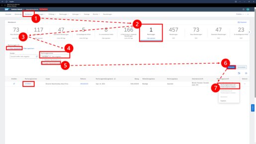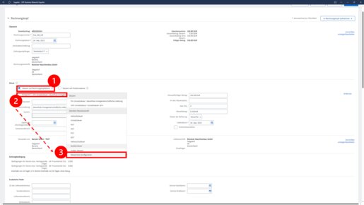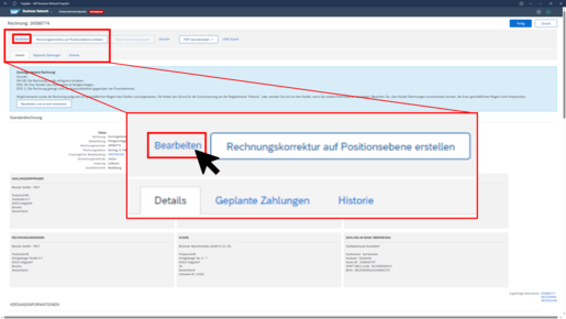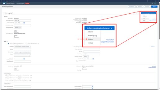 Bitte gehen Sie im Rechnungsbeleg auf „Bearbeiten“ und führen folgende Schritte durch: