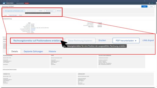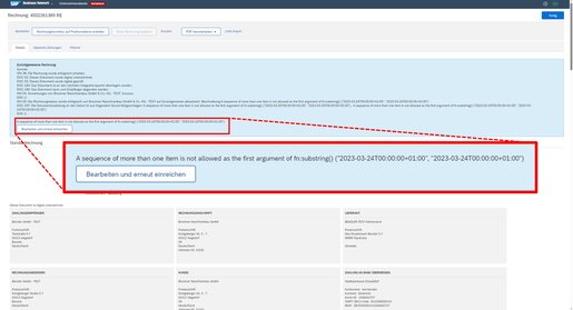 Anschließend können Sie über Weiter und Einreichen die Rechnung erneut absenden.