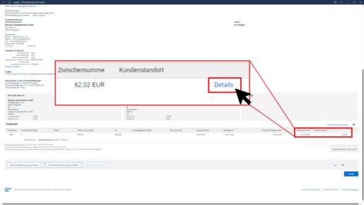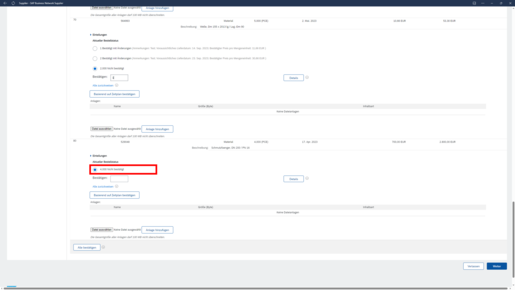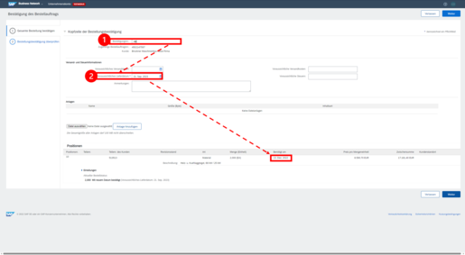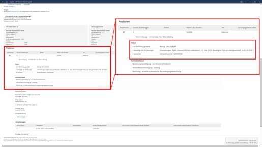 Jetzt erscheint unter „Aktueller Bestellstatus“ die Information, dass die Position zwar bestätigt wurde, aber eine Änderung im Preis oder Termin eingetragen wurde.