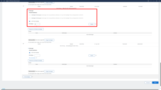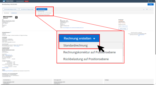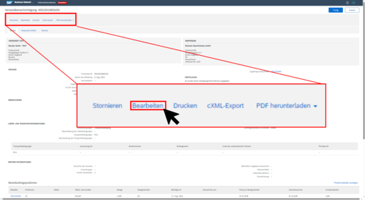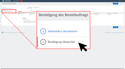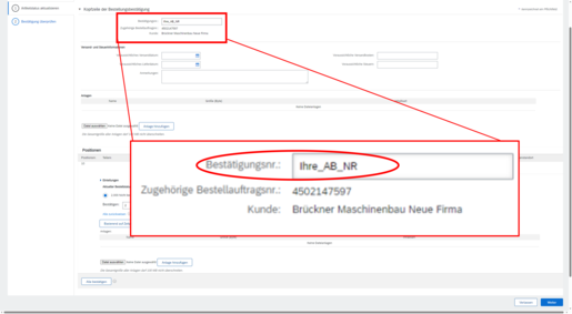 Eingereichte Auftragsbestätigungen können nicht bearbeitet werden. Um eine korrekte Auftragsbestätigungsnummer zu übermitteln, müssen Sie eine neue Auftragsbestätigung erstellen.