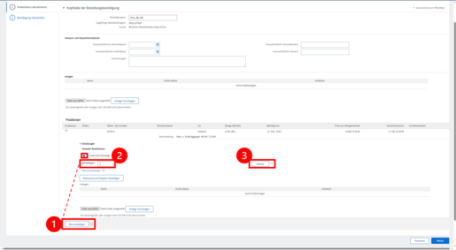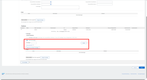 Diese Option kann auch dazu verwendet werden nachträgliche Preisabweichungen oder Terminverschiebungen für eine oder mehrere Positionen zu bestätigen.