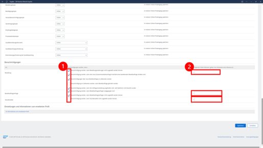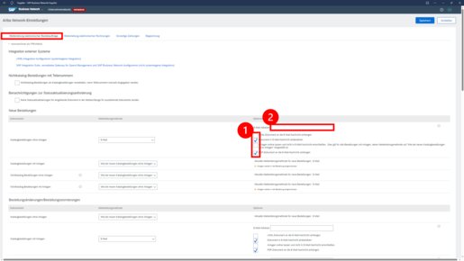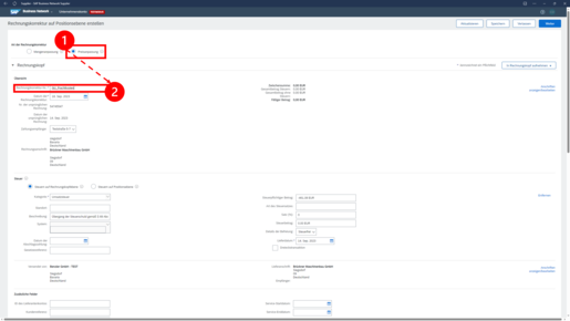 Bei Versandbenachrichtigungen über SAP Ariba können Sie entweder Teilmengen von Positionen in die Versandbenachrichtigung mit aufnehmen (1) oder nur bestimmte Positionen zum Versand anmelden (2).