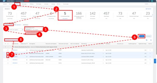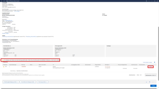 Sobald Sie von uns eine Bestelländerungsnachricht erhalten haben, sollte diese Fehlermeldung nicht mehr angezeigt werden und Sie können auch für diese Positionen eine Rechnung stellen.