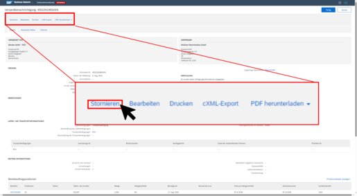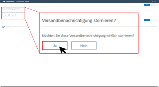 Sie haben versucht die Position aus einer bereits erstellten Versandbenachrichtigung zu stornieren. Die Stornierung ist fehlgeschlagen, da der Wareneingang der Position bereits gebucht wurde.