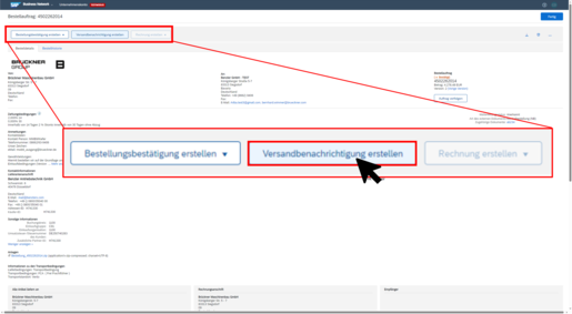 Alternativ können Sie direkt im Einkaufsbeleg per “Versandbenachrichtigung erstellen” eine Versandbenachrichtigung erstellen.
