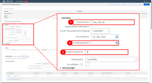 In SAP Ariba ist die Angabe des Zustelldatums ein Pflichtfeld bei der Übermittlung einer Versandbenachrichtigung.