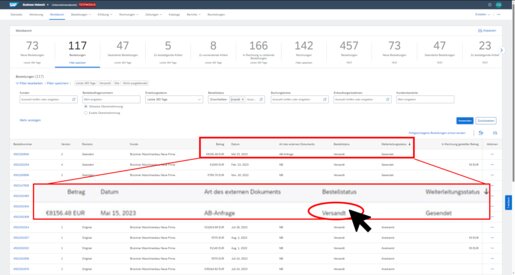 | „Versandt“ / „teilweise Versandt“ | Die Positionen der Bestellung wurden vollständig oder teilweise versandt. |