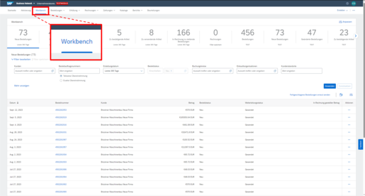 Die Workbench ist Ihr Arbeitsbereich in Ariba. Dort können Sie alle Bestellungen in den verschiedenen Status (AB, ASN, RE) finden.