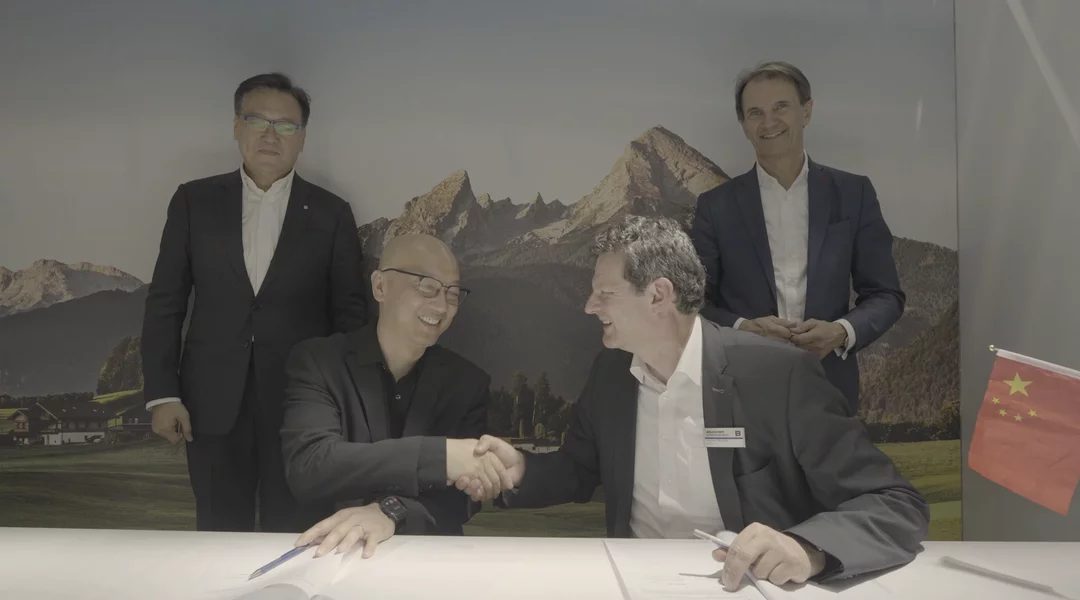 During the signing ceremony at Brückner Group’s Chinaplas 2025 exhibition booth, Nanyang Huacheng Technology’s Director & Vice General manager Mr. Ding BangJian and Brückner Maschinenbau’s Sales Director Mr. Reinhard Priller emphasized the forward-looking character of the agreement in the age of electro mobility. The two companies are also continuing a long and successful partnership history over decades.