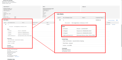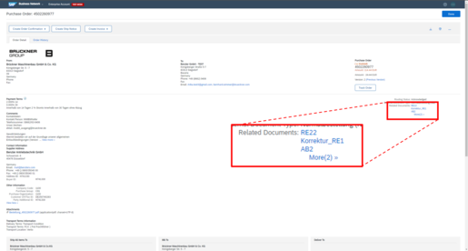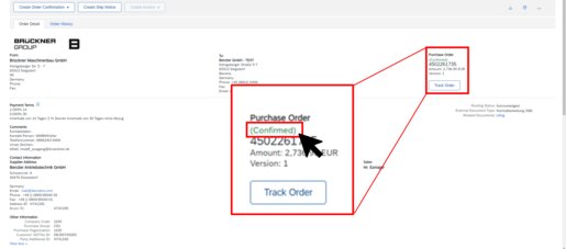 Brückner Maschinenbau has sent an order change, that hast not yet been confirmed. This status can also appear, if a shipping notification as already been created. |