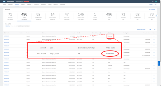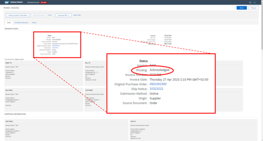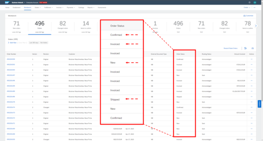 | Partially Invoiced | You have already invoiced part of the items. Check whether the other items still need to be confirmed or notified for shipment. Depending on the status, create an Order Confirmation and/or an Advanced Ship Notice. |