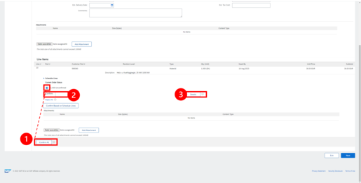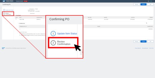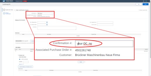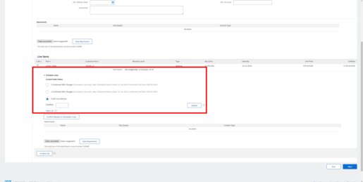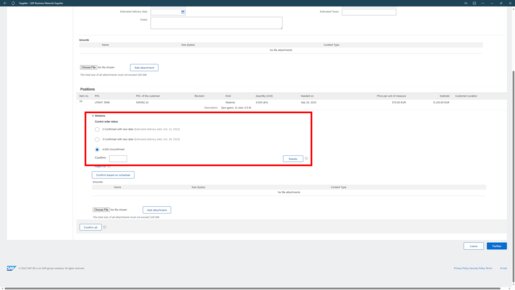 Afterwards Ariba displays what quantity is confirmed with which data.