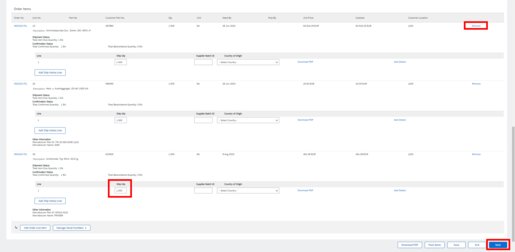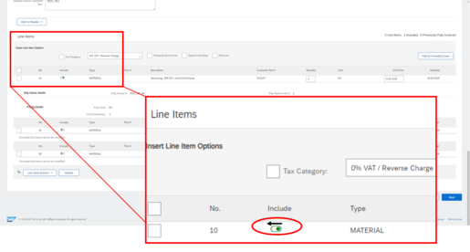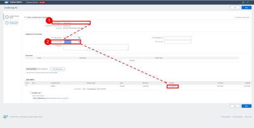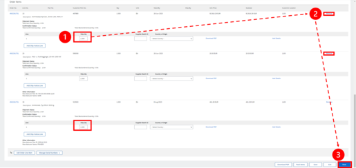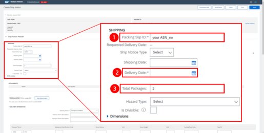 For partial Advanced Ship Notices via SAP Ariba, you can either include partial quantities of items in the ship notification (1) or register only certain items for shipping (2).