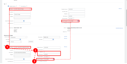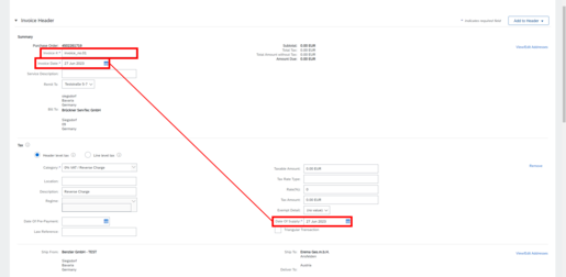 If you add a tax category for additional costs whose delivery date is different from the delivery date in the invoice header, Ariba moves this tax data to the invoice header.