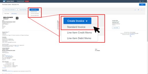 Alternatively, enter der Purchase Order click on “Create Invoice” and select “Standard Invoice”.