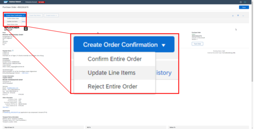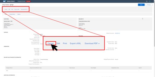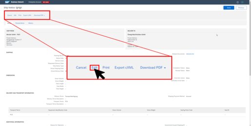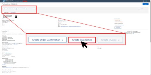 Alternatively, you can create a ship notice directly in the order document via „Create Ship Notice“.