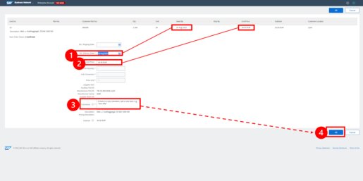 | We ask for price quote | The cost clarification is not yet completed. As soon as the prices are clarified, we will send you an order change message with the agreed prices. |