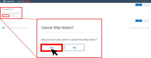 You can cancel or continue the creation of the Advanced Ship Notice.