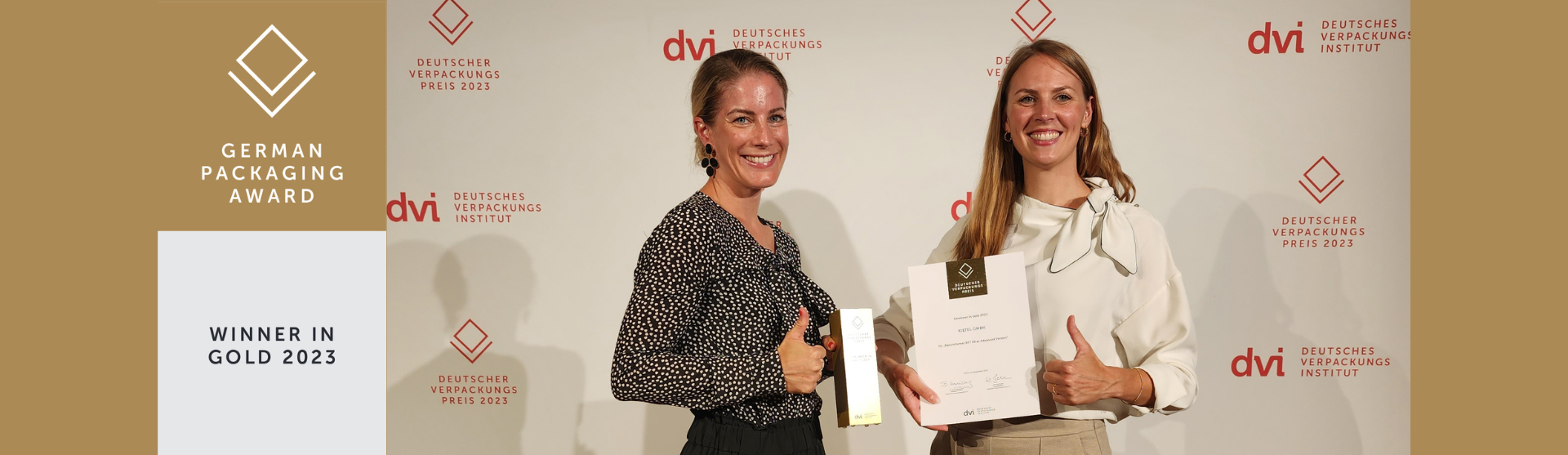 Die unabhängige Jury des Deutschen Verpackungspreises 2023 hat kürzlich die Gewinner des Deutschen Verpackungspreises bekannt gegeben - Europas größter Leistungsschau rund um Verpackungen, das auf eine bemerkenswerte sechs Jahrzehnte lange Tradition zurückblicken kann. Unter den 34 Innovationen aus England, Deutschland, den Niederlanden und Österreich, die sich bei der materialübergreifenden Leistungsschau des Deutschen Verpackungsinstituts e.V. durchgesetzt haben, wurde der NATUREFORMER KFT 90 von Kiefel als Advanced-Version in der Kategorie Verpackungsmaschinen ausgezeichnet. Bei der Verleihung des Deutschen Verpackungspreises, die am 13. September in Berlin stattfand, erhielt der NATUREFORMER KFT 90 als Advanced Version auch den Gold Award, eine besondere Auszeichnung, die die bahnbrechenden Innovationen unter den bisherigen Preisträgern würdigt. Cornelia Frank, Global Director der Division Fiber Packaging, und Janna Dautel, Leiterin der Abteilung Marketing und Kommunikation bei Kiefel, nahmen die Preise entgegen.