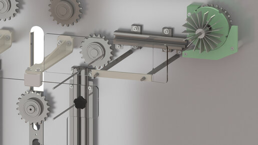 Ein Servomotor und eine pneumatische Spanneinheit steuern den Druckspeicher.